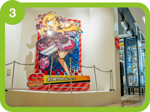 通路側に向けた展示スペース。PR商材の配置はもちろん、小規模イベントの握手会やガチャガチャの設置なども可能。用途に合わせて自由にお使い頂けます。