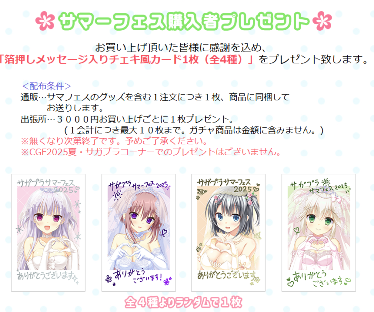「 サマーフェス 購入者プレゼント」といたしましてお買い上げ頂いた皆様に感謝を込め、