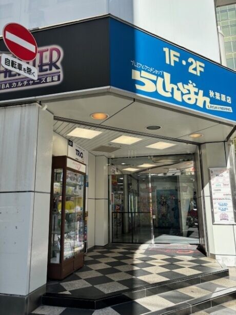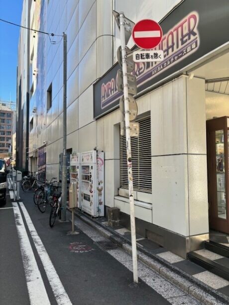 - 朝の整理券配布場所 AKIBAカルチャーズZONE 1F 写真の出入り口の一方通行の標識から自転車が置いてある方向にお並びください。